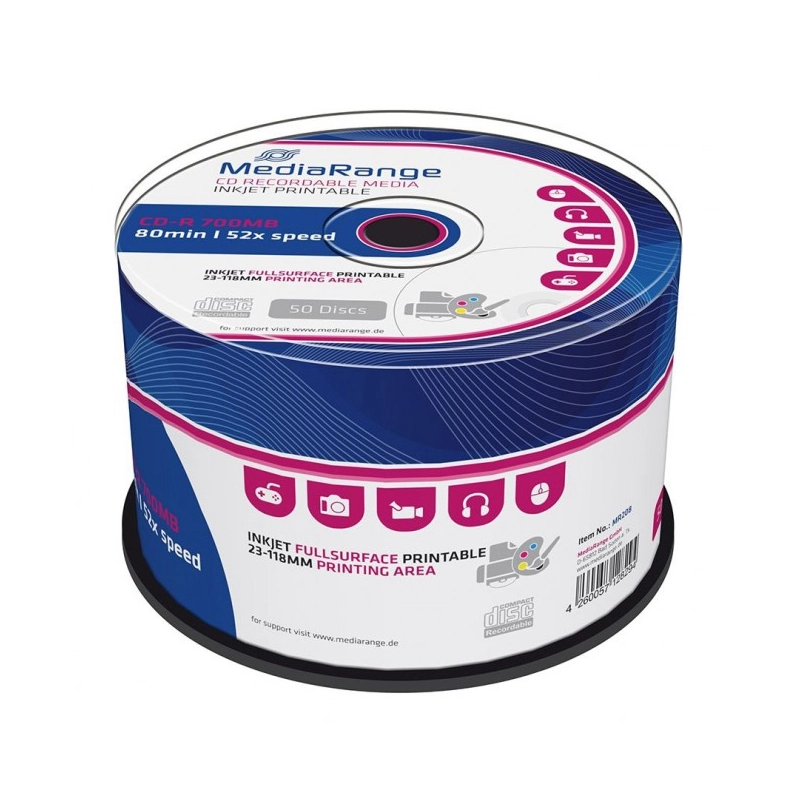 Mediarange 50 CD-R InkJet Full Surface Printable 700MB 80 Minuti 52X – MR208